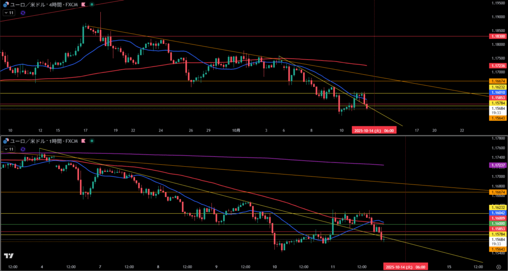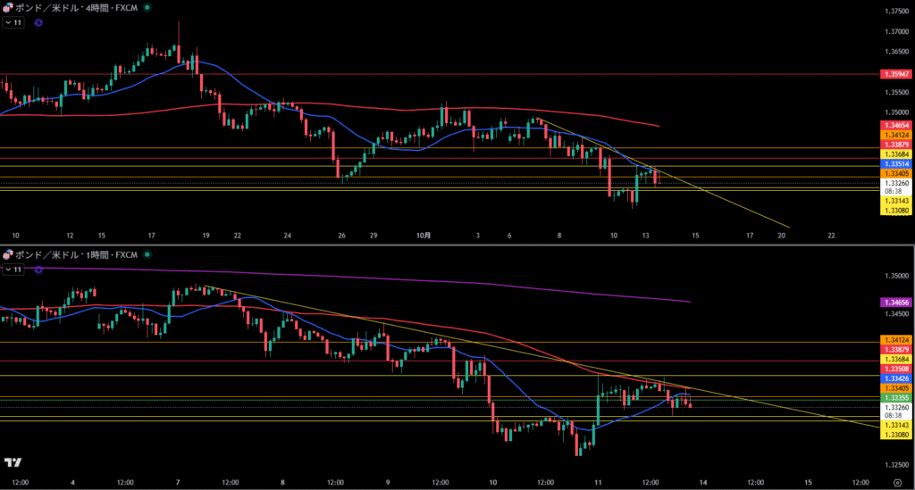 日足下落の波の途中は4時間足の下降トレンドを追いかける。が