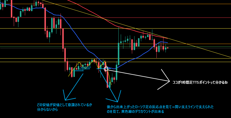 ピンク矢印は1時間足TTSの卵なんだけど、これで1時間足TTS出たと感じる、水色矢印は4時間足TTSと感じる。
