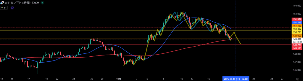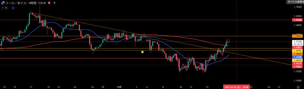 移動平均線は4時間足の売り抑えとして機能しやすい。