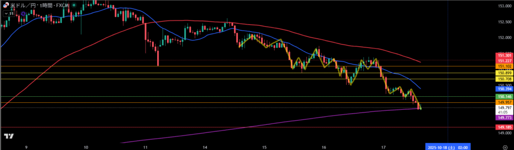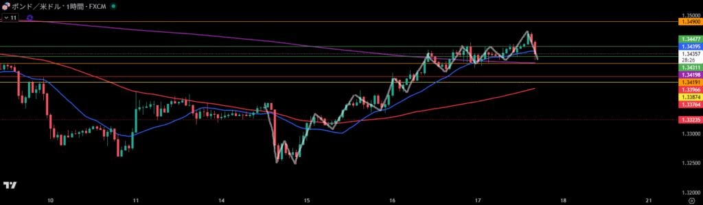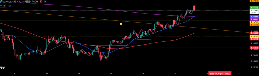 移動平均線は1時間足の売り抑えとして機能しやすい。