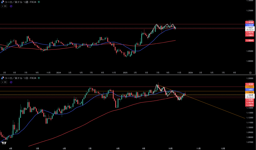 移動平均線は週足のレジスタンスとして機能しやすい。が角度が若干上である。