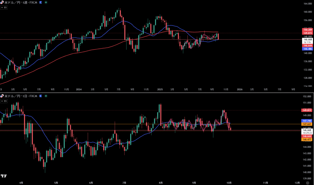 オレンジ線より上に日足の売り抑え勢力が居る。