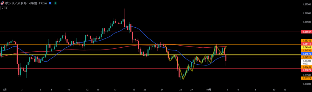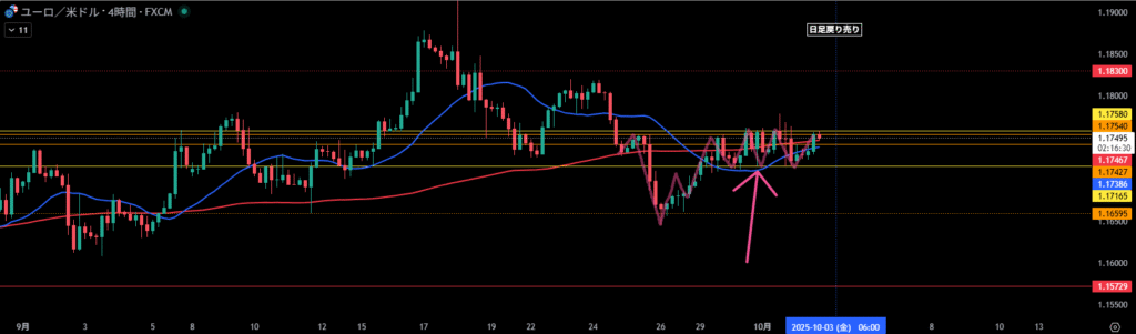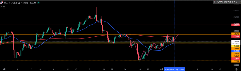 移動平均線は4時間足の売り抑えとして機能しやすい。