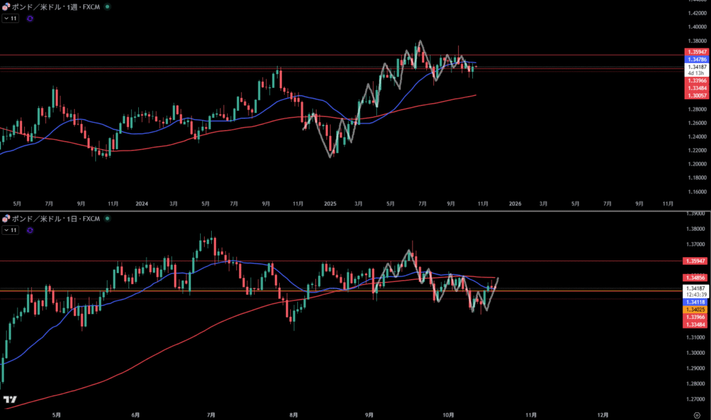 移動平均線は週足のレジスタンスとして機能しやすい。が角度が若干上である。