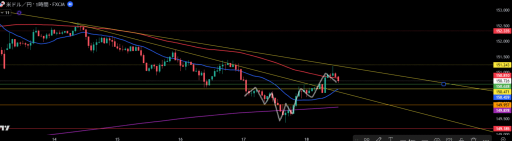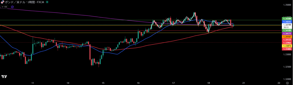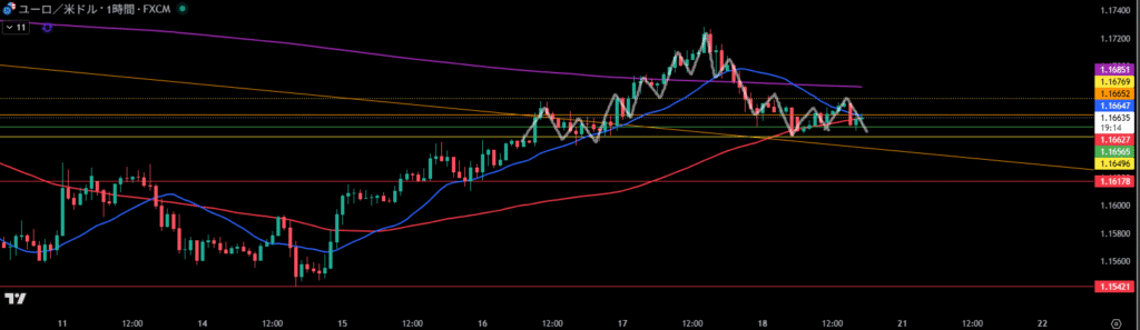 移動平均線は1時間足の売り抑えとして機能しやすい。