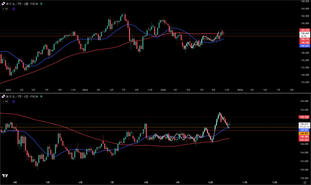 オレンジ線より下の日足の押し目買い勢力が居る。