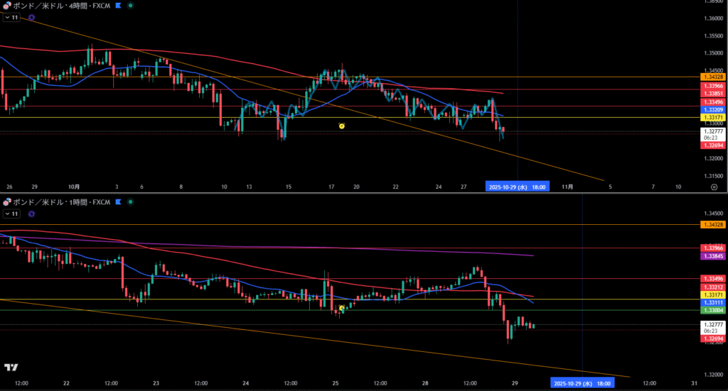 明日の欧州にポンドル戻り売りを狙っていくが、ユロドルと逆か、どっちかは外れかな。