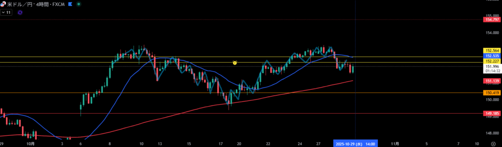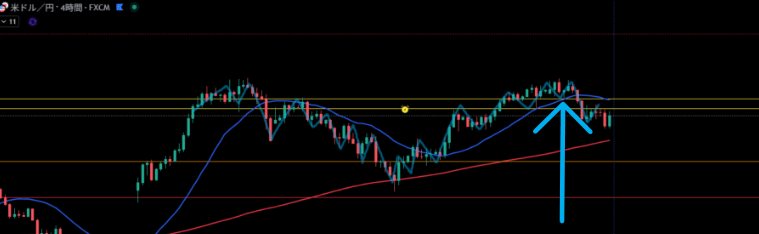 移動平均線は4時間足の売り抑えとして機能しやすい。