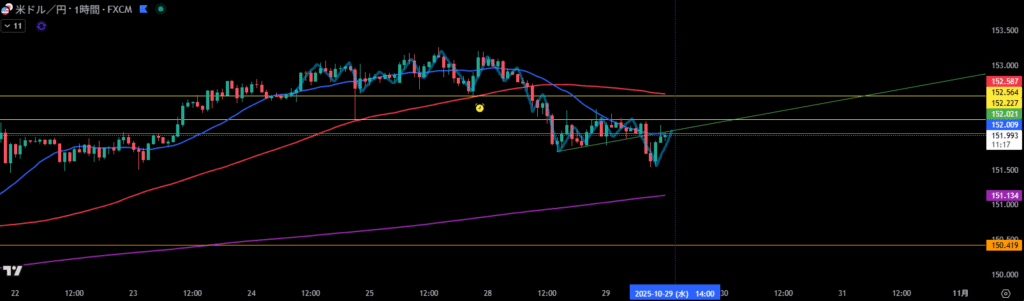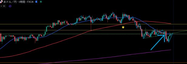 緑線より下に1時間足の買い支え勢力が居る。
