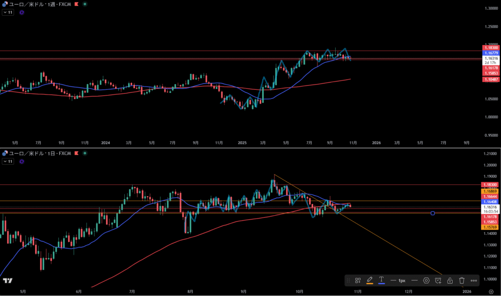 オレンジ線より上に日足の売り抑え勢力が居る。
