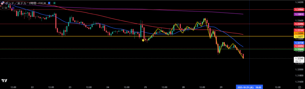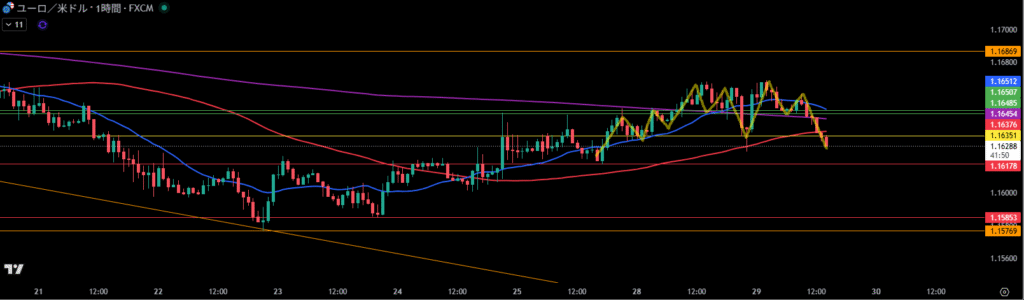 移動平均線は1時間足の売り抑えとして機能しやすい。