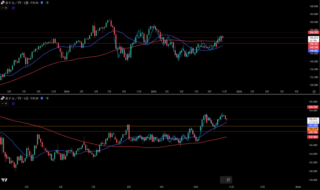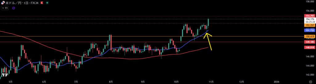 オレンジ線より下に日足の買い支え勢力が居る。