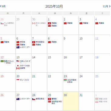 指標・休場(米国夏/欧州冬)