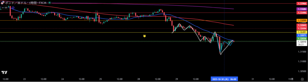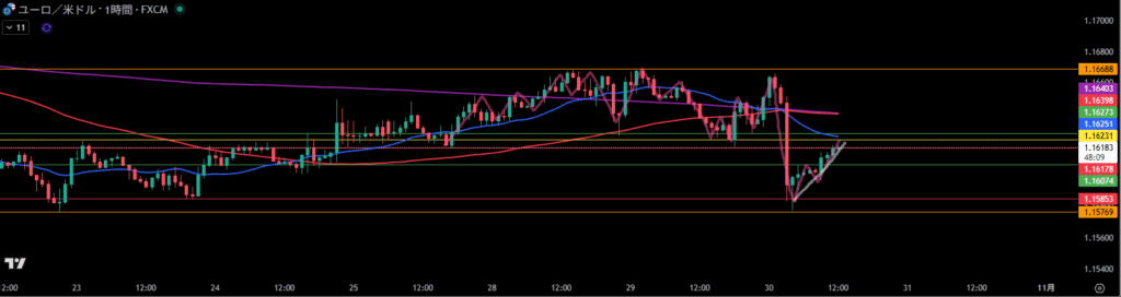 移動平均線は1時間足の売り抑えとして機能しやすい。