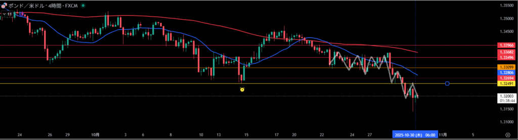移動平均線は4時間足の売り抑えとして機能しやすい。