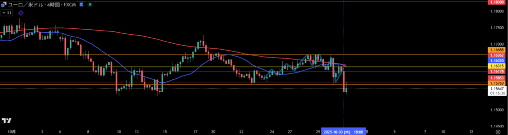 4時間足方向は下。