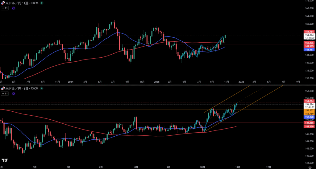 オレンジ線より下に日足の押し目買い勢力が居る。