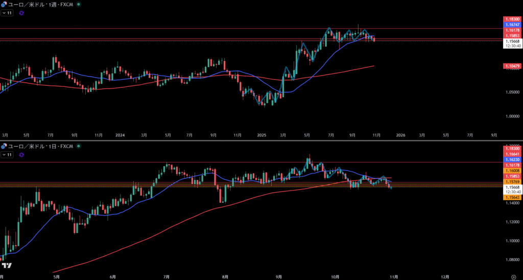 オレンジ線より上に日足の戻り売り勢力が居る。