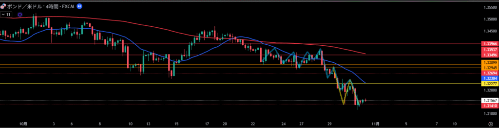 黄色線より上に4時間足の売り抑え勢力が居る。