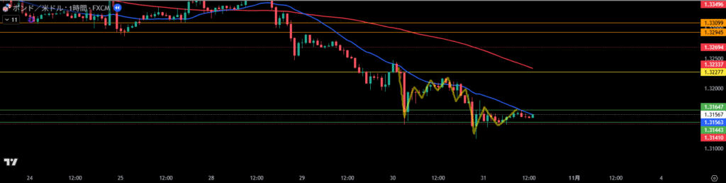移動平均線は1時間足の売り抑えとして機能しやすい。