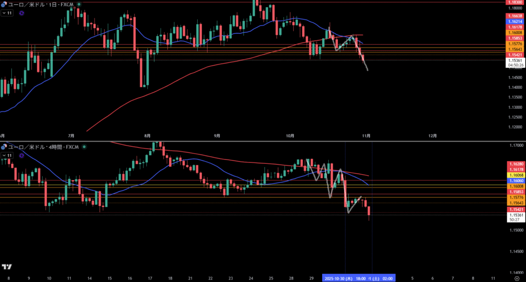 米国時間に4時間足戻り売りを狙っていくが、戻りを付ける過程でTTSの卵が出る可能性も視野に入れておく。