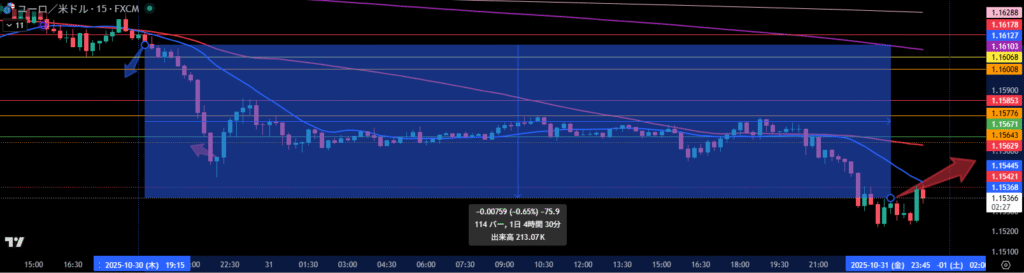 1時間足TTSが出て、15分足どこ終わの、結局同じ価格帯でエントリー。