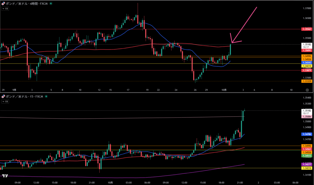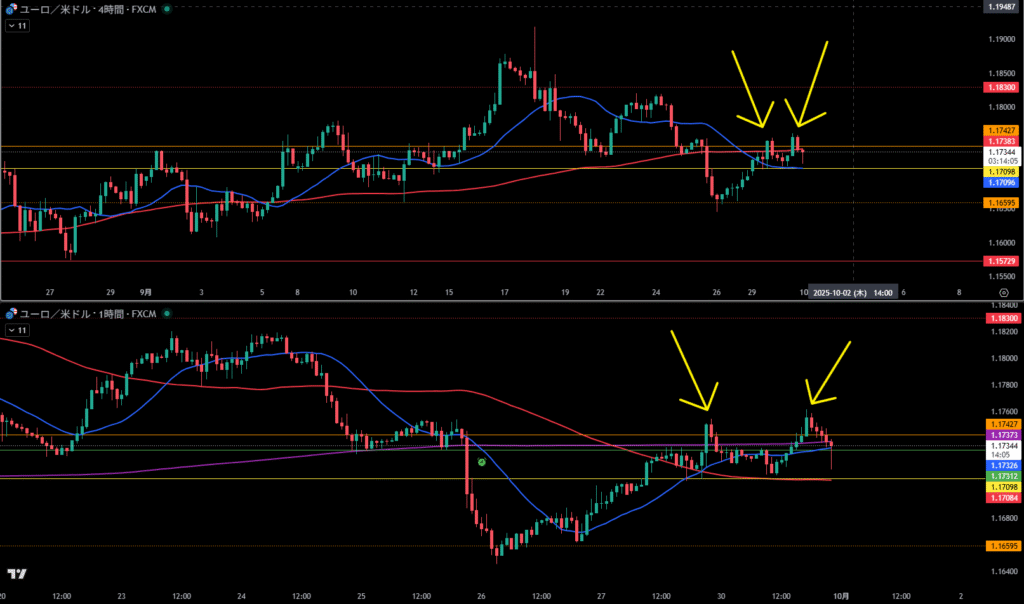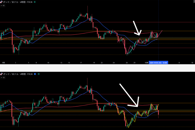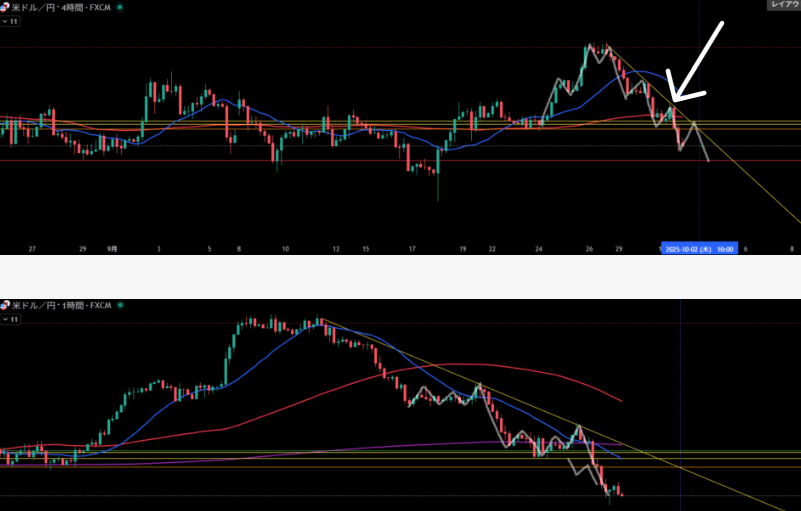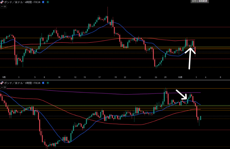 4時間足ダウが買いも売りも見えていることが素晴らしい。