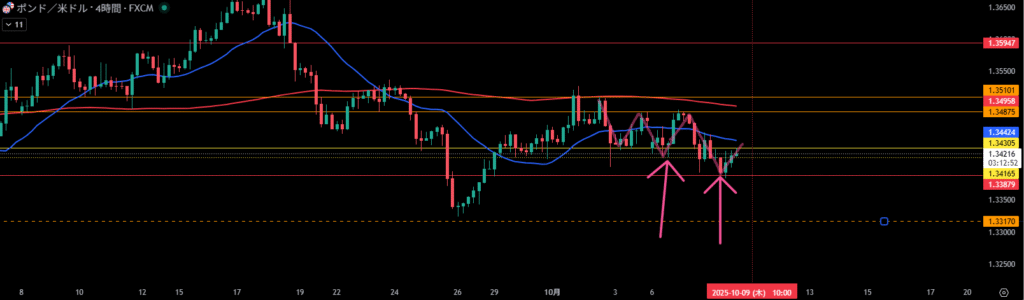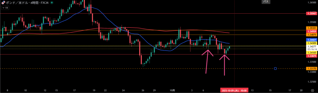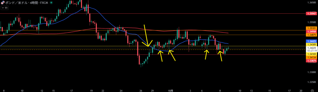 移動平均線は4時間足の売り抑えとして機能しやすい。