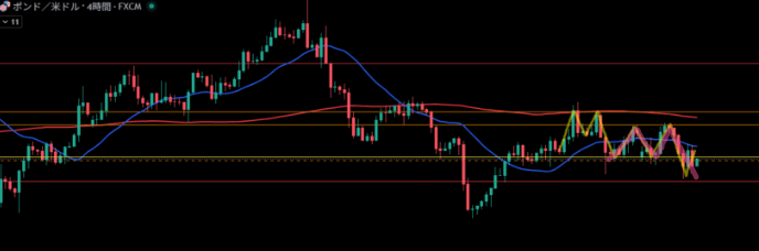 黄色線より上に4時間足の売り抑え勢力が居る。