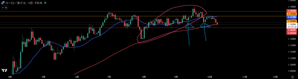 オレンジ線より上に日足の売り抑え勢力が居る。