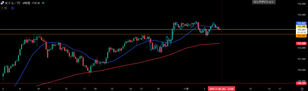ただ押して来た時に4時間足移動平均線と交差しないか注視する。