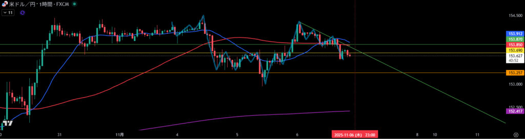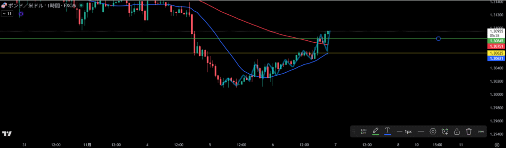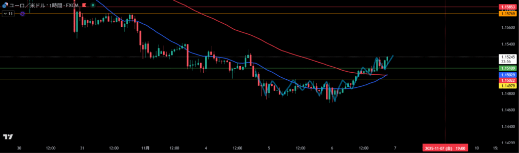 移動平均線は1時間足の売り抑えとして機能しやすい。