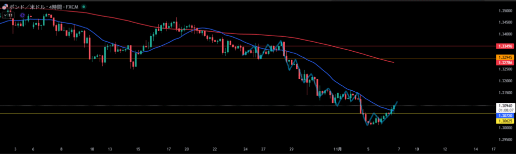 移動平均線は4時間足の売り抑えとして機能しやすい。