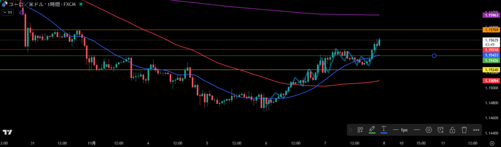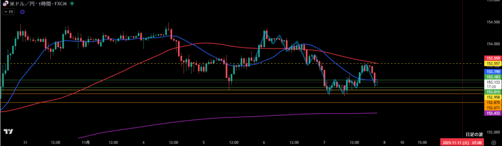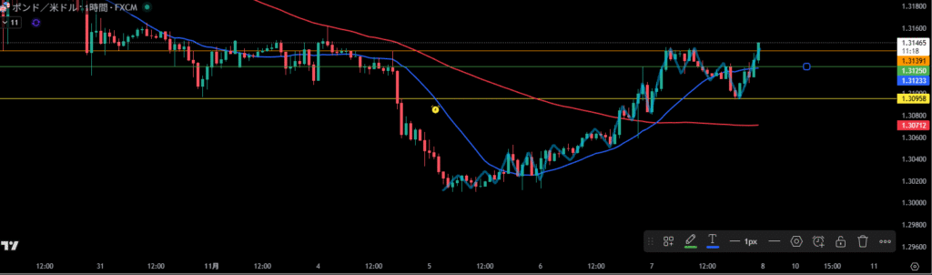 移動平均線は1時間足の売り抑えとして機能しやすい。