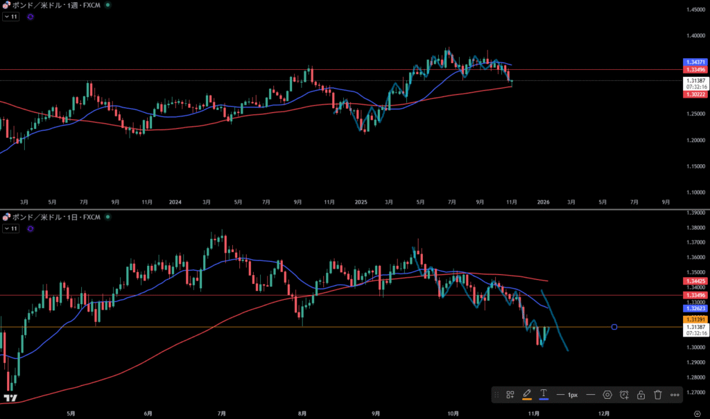 赤線より下に週足のサポート勢力が居る。
