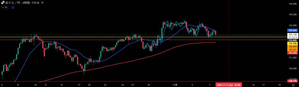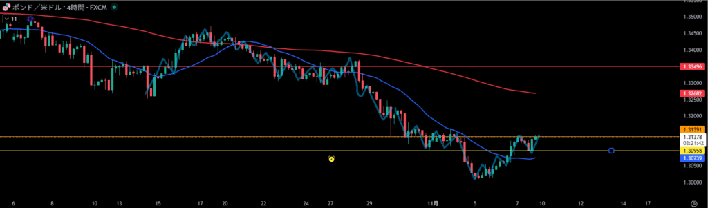 移動平均線は4時間足の売り抑えとして機能しやすい。