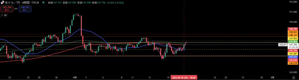 移動平均線は4時間足の売り抑えとして機能しやすい。