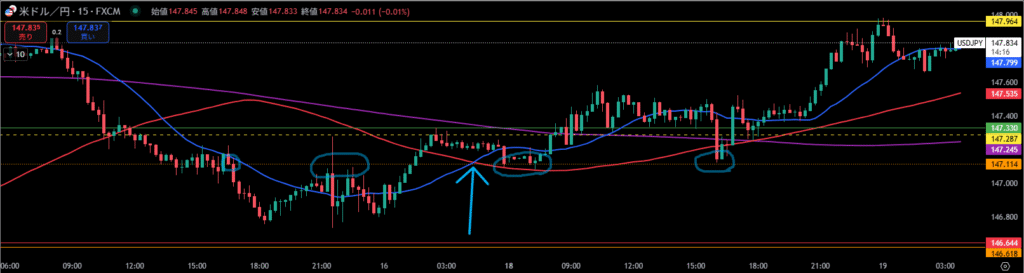 4時間足MAと交差しているが、自分はMAにのっかったエリアで入ったが使い方が違ったか