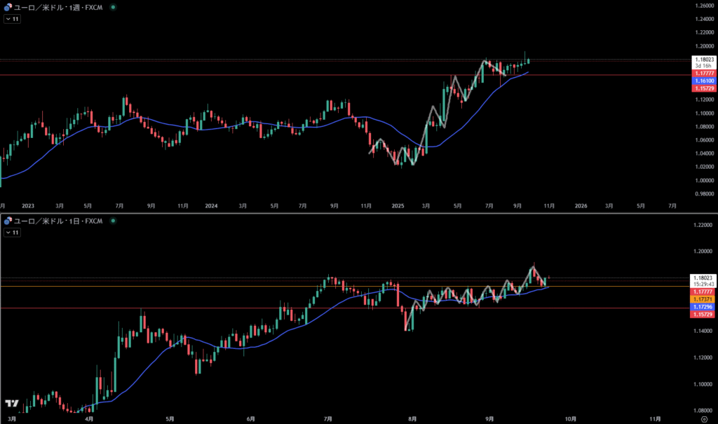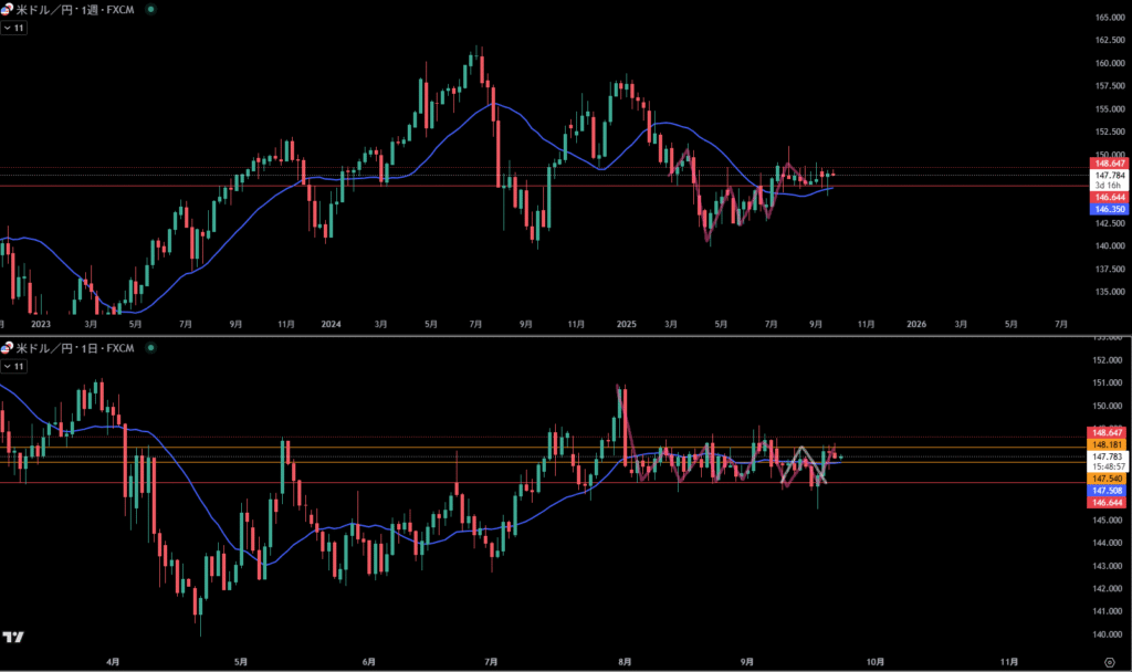 オレンジ線より上に日足の戻り売り勢力が居る。