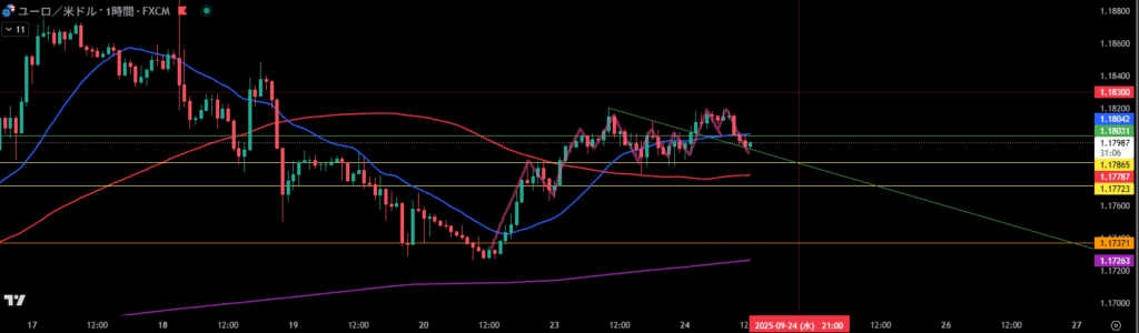移動平均線は1時間足の売り抑えとして機能しやすい。