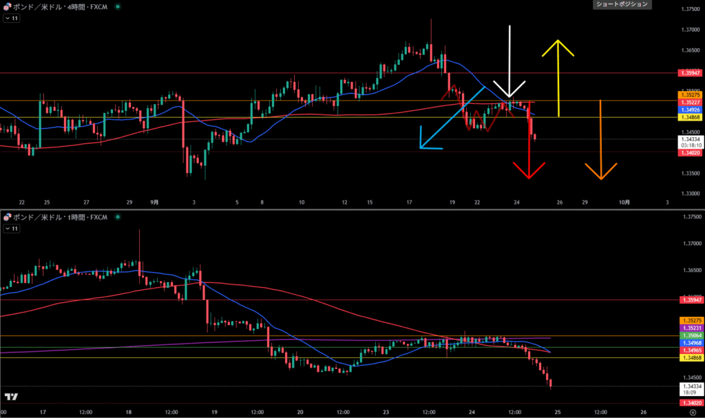 黄色線より上に4時間足の戻り売り勢力が居る。