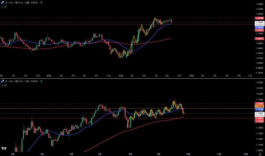 オレンジ線より上に日足の戻り売り勢力が居る。