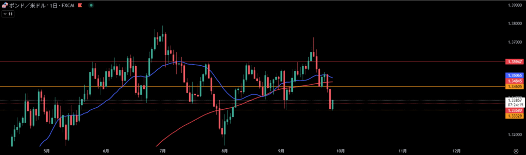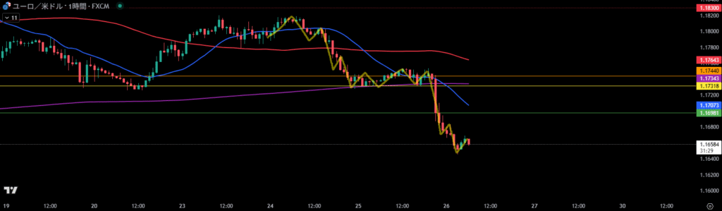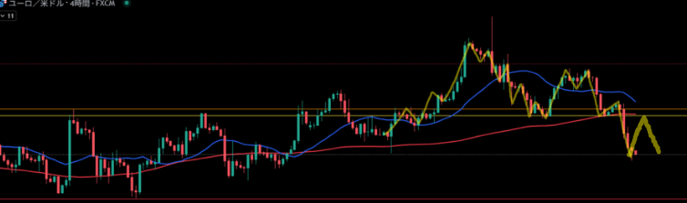 4時間足は大きく下落し4時間足戻り売りラインまで距離がある。