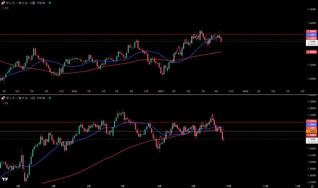移動平均線は週足の買い支え。だがレートが交差し角度が水平になっている。
