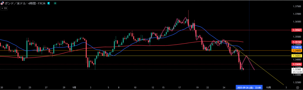 日足下落の波の途中は4時間足の戻り売りを追う。