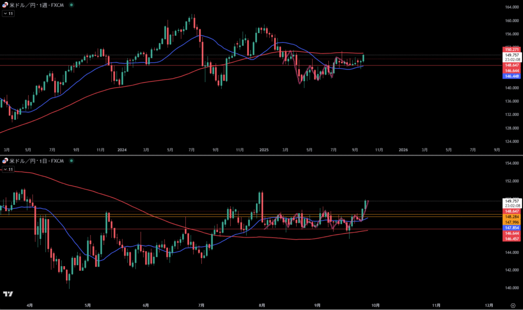 オレンジ線より下に日足の押し目買い勢力が居る。