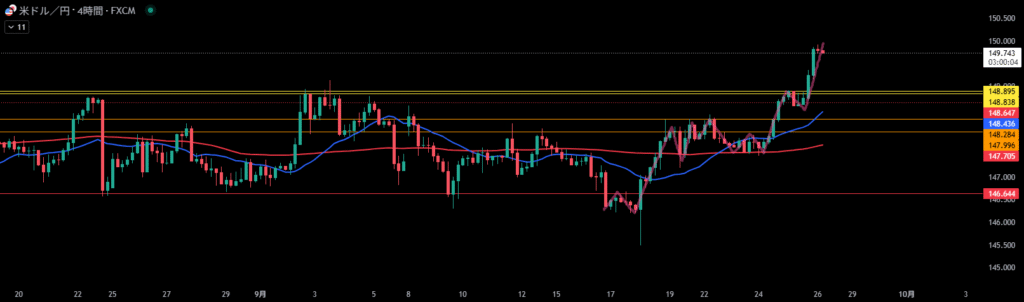 移動平均線は4時間足の売り抑えとして機能しやすい。