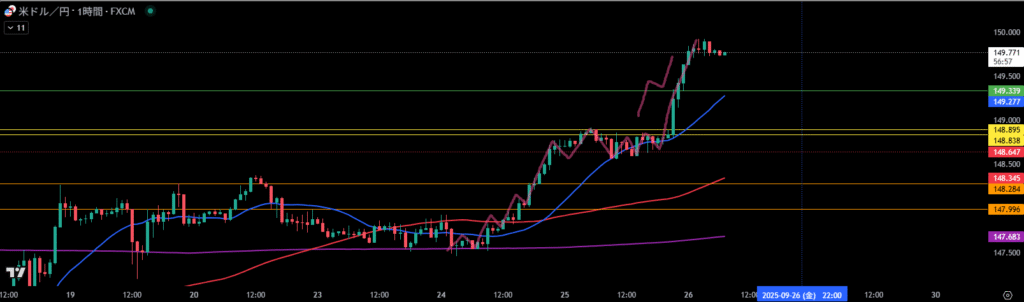 緑線より下に1時間足の買い支え勢力が居る。ように感じる。
