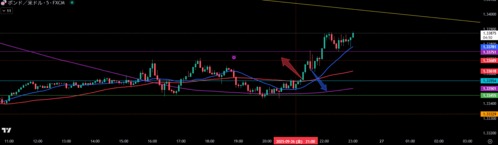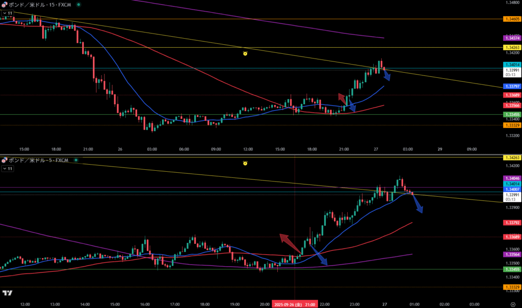 15分足の戻り売りラインも視えているので、エントリー後に15分足戻り売りラインで逆行することも想定内として、エントリーした。