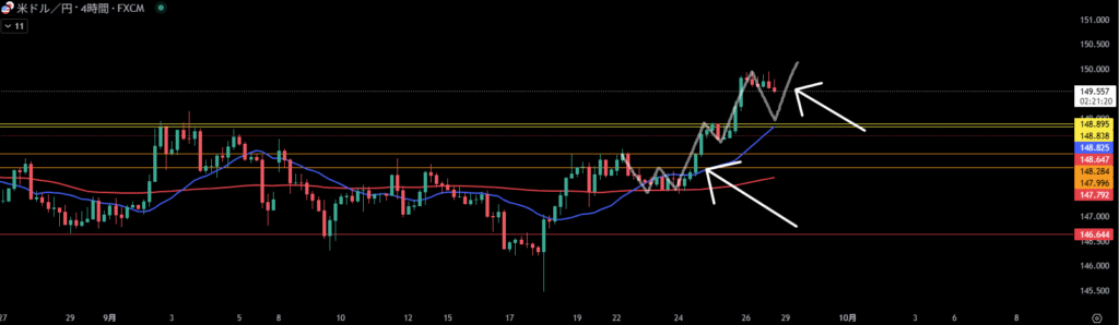 移動平均線は4時間足の買い支えとして機能しやすい。